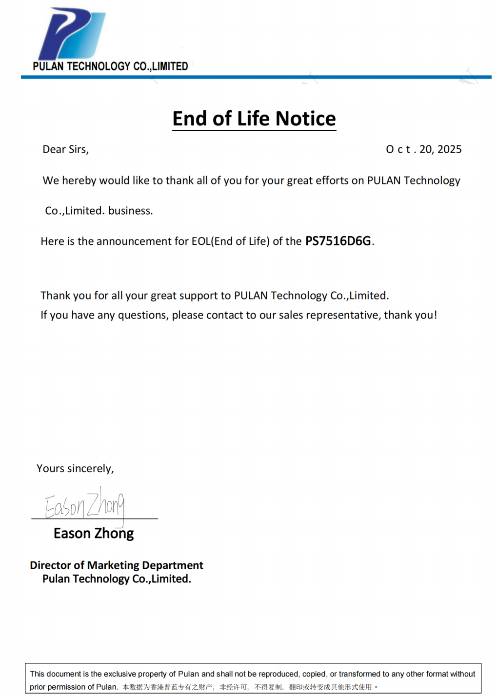Here is the announcement for EOL(End of Life) of the PS7516D6G.